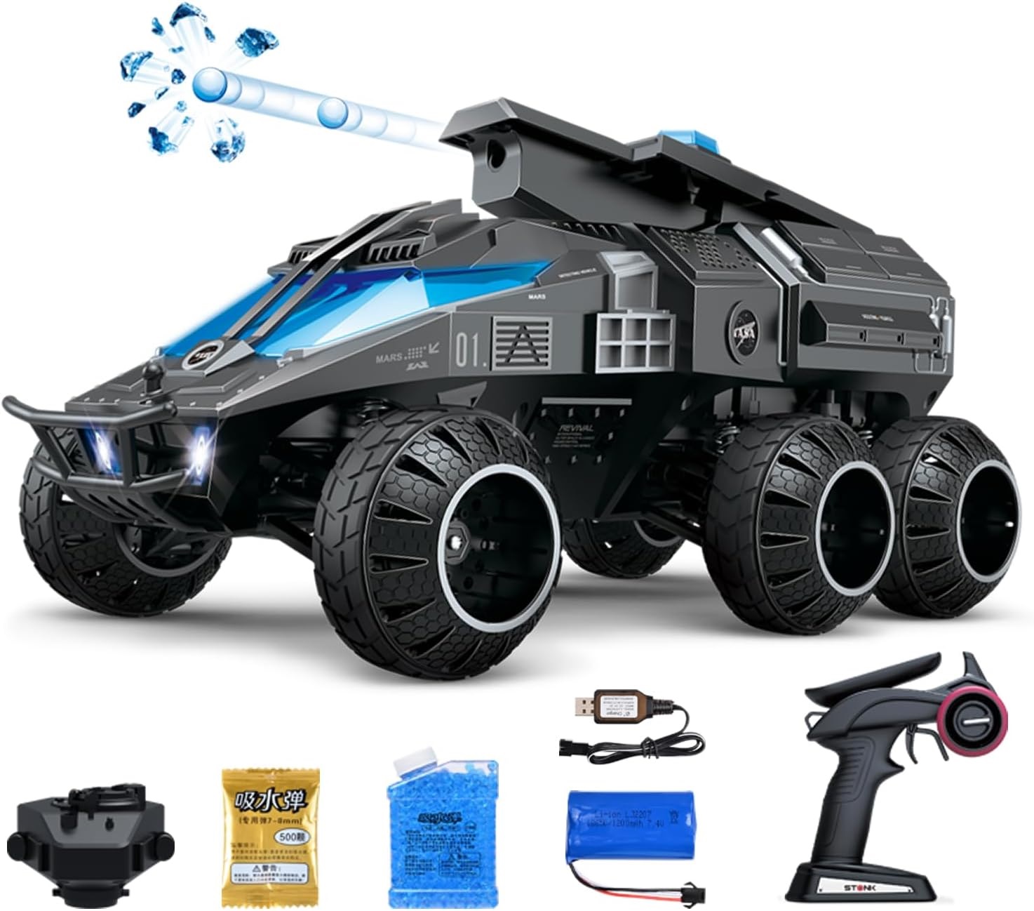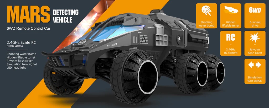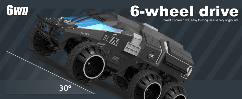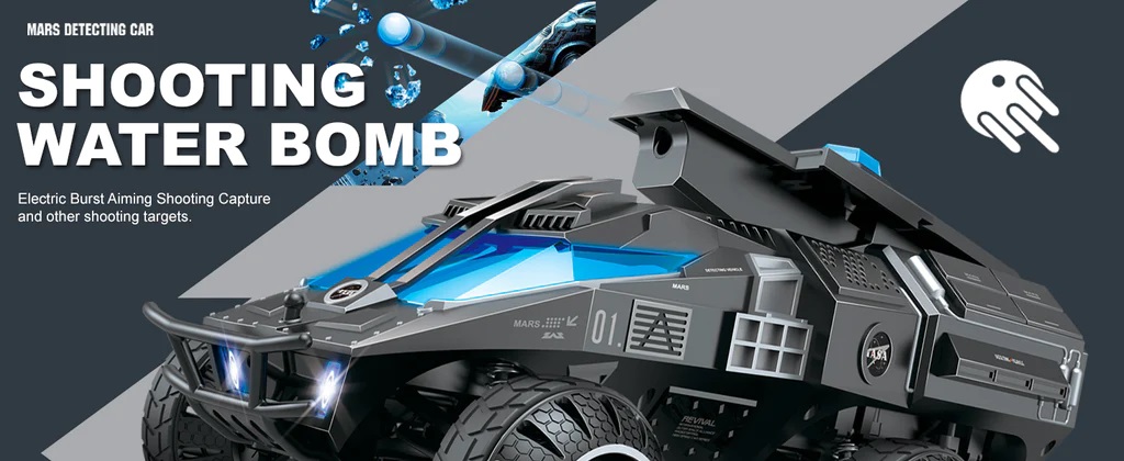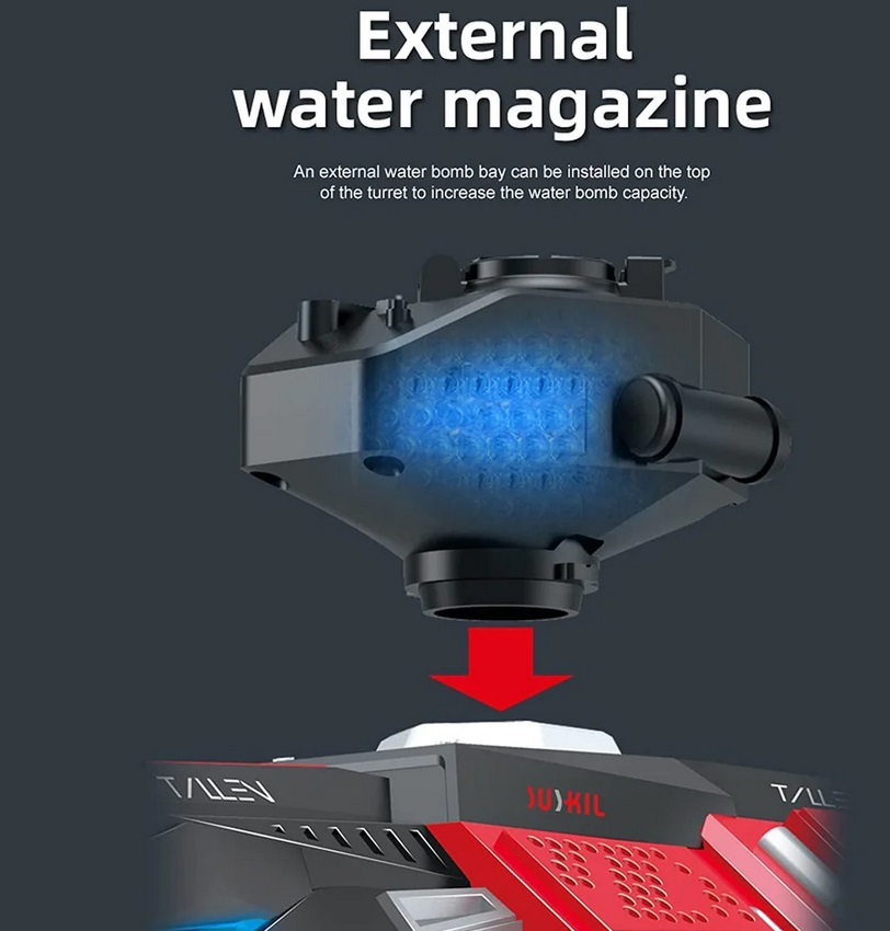 RACENT Crawler Terenowy Monster Truck w skali 1/12 to najnowszy terenowy model RC wyposażony w mocny silnik, napęd na 6 kół oraz realistyczną chowaną wieżyczkę z działem wodnym, ponadto model został wyposażony w zewnętrzny zbiornik wodny, który można bez problemu na bieżąco uzupełnić. Oferuje fajne wrażenia, elastyczną obsługę i doskonałą wydajność. Model ten został stworzony z wytrzymałych komponentów, aby dostarczyć realistyczne wrażenia z jazdy w terenie.