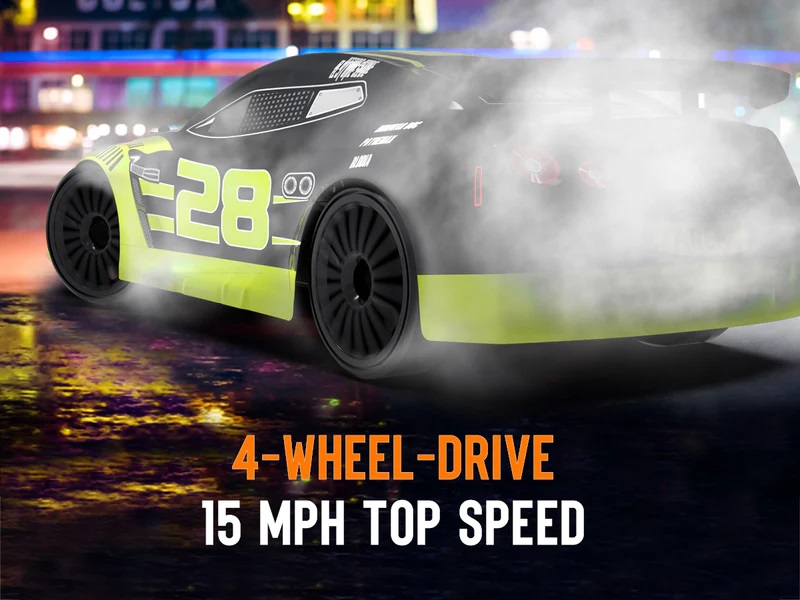 Wzbogać nocne wyścigi dzięki wbudowanemu oświetleniu LED w naszym modelu RC drift car. W zestawie znajdziesz 2 akumulatory, zapewniające długi czas zabawy. Będzie to doskonały prezent dla dzieci i dorosłych! Bez względu na wiek czy płeć, nasz zdalnie sterowany samochód to gwarancja ekscytujących wyścigów i godzinnej rozrywki. Modele drift cars doskonale się prowadzą, zapewniając realistyczne doznania z jazdy. Zaprojektowane z najwyższej jakości materiałów, gwarantują trwałość i długotrwałą wydajność.