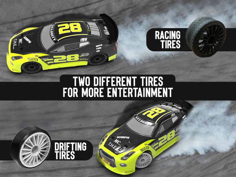 Model został wyposażony w opony do wyścigów oraz driftingu.