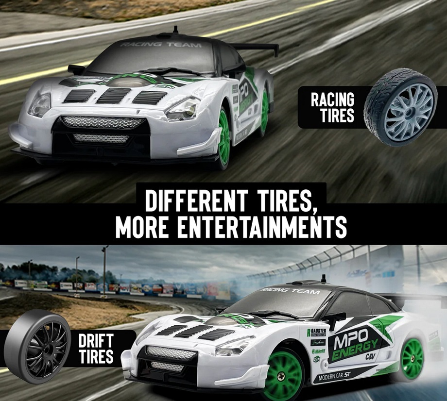 Model został wyposażony w opony do wyścigów oraz driftingu.