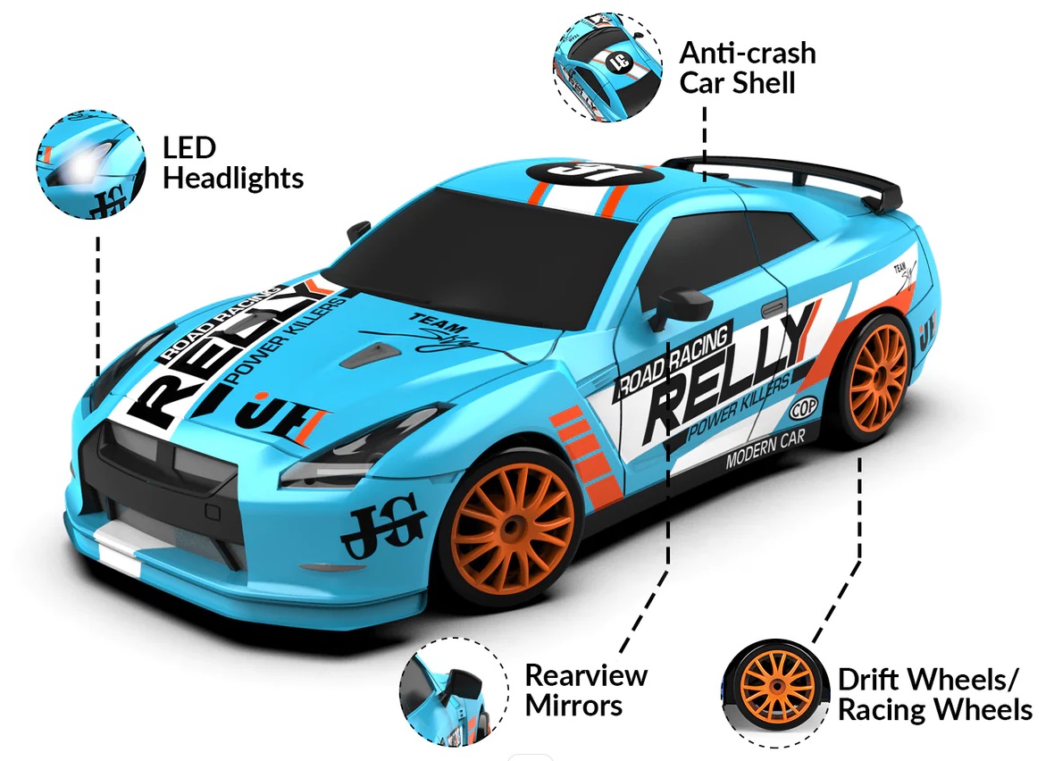 Zapraszamy do wspaniałego świata prędkości z naszym zdalnie sterowanym modelem RC RACENT Thrill Rider. Model ten posiada napęd 4x4, osiągający prędkość do 15 km/h. Doskonały zarówno do wyścigów w pomieszczeniach, jak i na zewnątrz. Wyposażony w wymienne opony do wyścigów i driftingu, umożliwiając szybką zmianę stylu jazdy. Wzbogać nocne wyścigi dzięki wbudowanemu oświetleniu LED w naszym modelu RC drift car. W zestawie znajdziesz 2 akumulatory, zapewniające długie godziny zabawy. Będzie to doskonały prezent dla dzieci i dorosłych! Bez względu na wiek czy płeć, nasz zdalnie sterowany samochód to gwarancja ekscytujących wyścigów i godzinnej rozrywki. Modele drift cars doskonale się prowadzą, zapewniając realistyczne doznania z jazdy. Zaprojektowane z najwyższej jakości materiałów, gwarantują trwałość i długotrwałą wydajność.