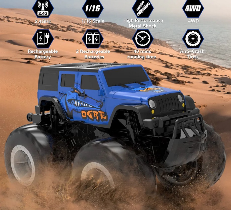 Model w wersji RTR zestaw zawiera wszystkie niezbędne akcesoria do jazdy. We własnym zakresie należy dokupić 4 paluszki AA do zasilenia nadajnika.