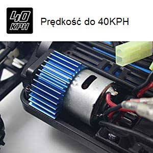 - Mocny silnik 390A w połączeniu z akumulatorem 7.4V 850mAh zapewnia wysoką prędkość do 40KPH. Ten szybki samochód terenowy RC wysoką prędkość do 40KPH. Ten szybki samochód terenowy RC zapewni Ci niesamowitą prędkość.