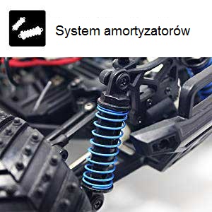 - Brak problemu na otwartej drodze, trawie, błocie itp. A zaawansowana technologia FHSS 2,4 GHz z możliwością zakłóceń działa w odległości do 150 metrów. Ciesz się autem przez dłuższy czas.