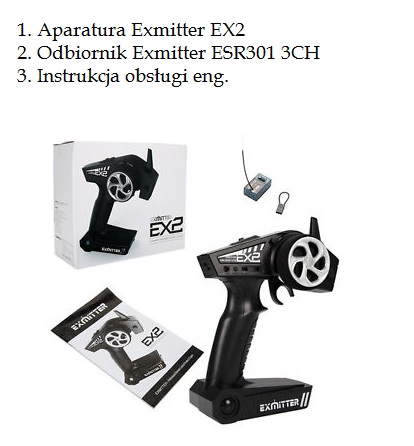 EX2 wraz z 3-kanałowym odbiornikiem ESR301 od Volantex RC to zaawansowane radio pistoletowe zarówno dla pocżatkującego jak i wymagającego uzytkownika. Aparatura posiada zintegrowaną antenę 2.4GHz, pamięć jednego modelu oraz jest bardzo intuicyjna w obsłudze. Jej zasięg to aż 300m. Istnieje możliwość regulacji gazu w proporcjach 7:3 oraz 5:5, posiada rewers dla skrętu i gazu.