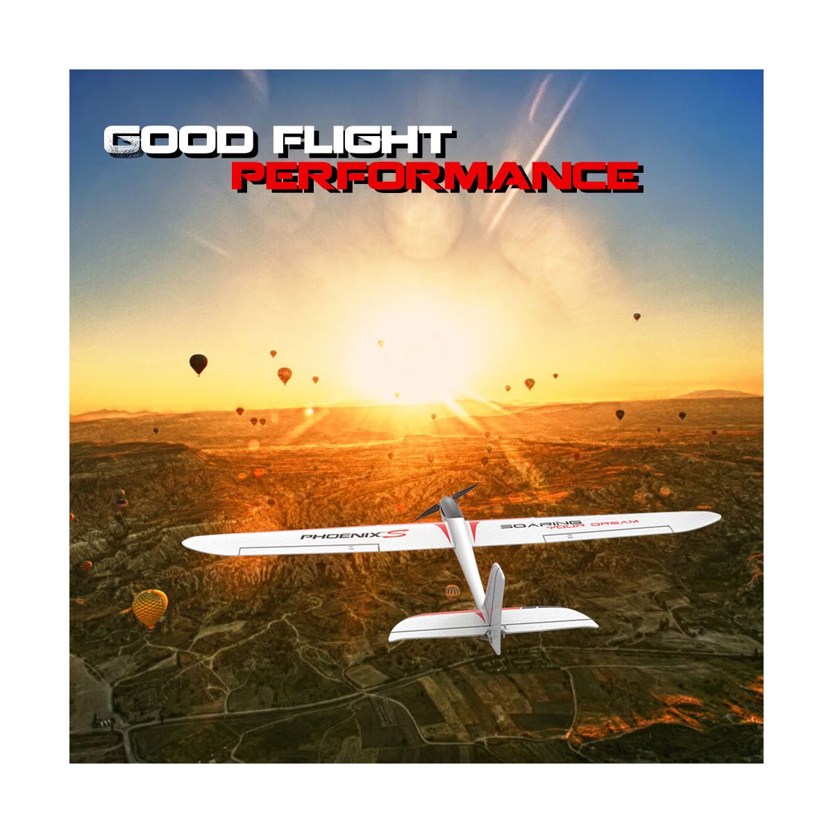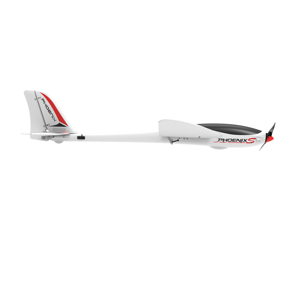 - Ze względu na długą rozpiętość skrzydeł, PhoenixS lata stabilnie na wietrze, jest w stanie oszczędzać energię poprzez szybowanie i wydłużyć czas lotu.