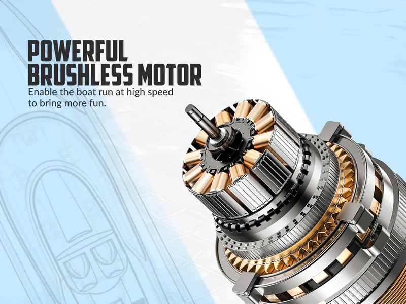 Wbudowany układ chłodzenia wodą pomaga utrzymać chłód łodzi ze zdalnym sterowaniem, co zapewnia dłuższy czas pracy i całodniową zabawę, co wydłuża żywotność silnika.