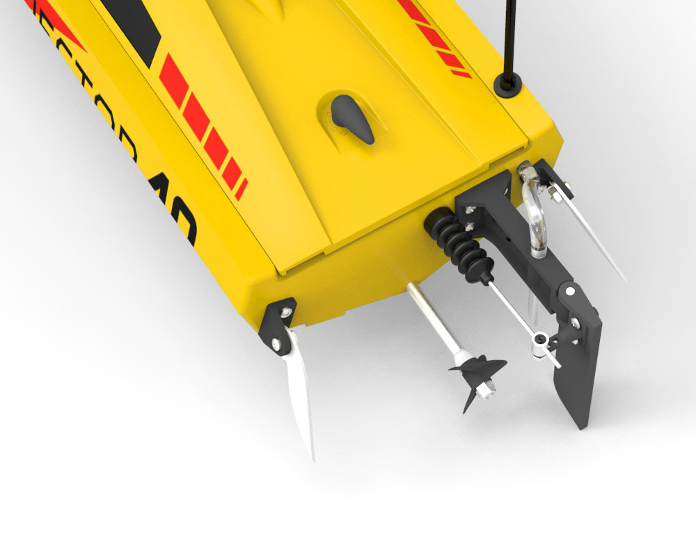 Prezentowany model wykonany został w całości z ABS'u dzieki czemu konstrukcja motorówki jest bardzo wytrzymała. Kadłub motorówki wykonany został tak, aby zapewnić wodoszczelność, dzięki czemu elektronika nie wymaga żadnych specjalnych zabezpieczeń. Zadbano również o wodne chłodzenie silnika, który pozwala na osiąganie dużych prędkości. W zestawie znajduje się nadajnik, odbiornik, silnik bezszczotkowy, regulator, serwo. W zestawie znajduje sie również akumulator oraz ładowarka (tylko wersja czarna).